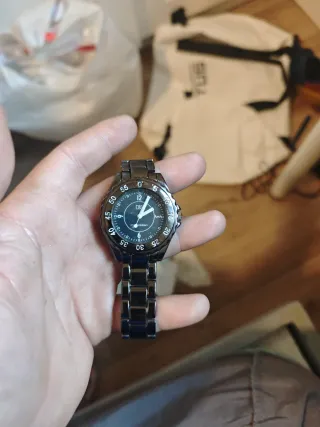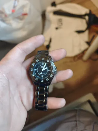 Reloj de pulsera plateado y negro