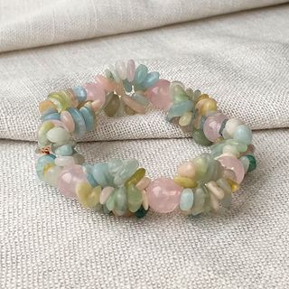 Pulsera elástica elaborada con piedras naturales de Morganita. Su diseño multicolor con toques rosados la hace única. - Piedras naturales de Morganita. - Diseño elástico para mayor comodidad. - Combinación de colores vibrantes.