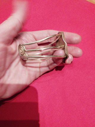 Pulsera metálica con incrustaciones de piedras brillantes . Apertura lateral Medidas : 4 cm altura x 8 cm. de ancho