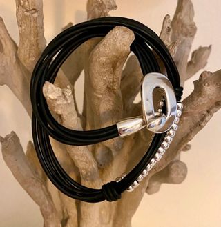 Pulsera en colores negro y plateado. Pulsera con cierre y detalle de cuentas en acero 💫. Solo se realizan envíos 📦.