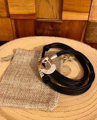 Pulsera ajustable de cuerda trenzada 🪢 en color azul marino. Pulsera con cierre de acero en forma de cola de ballena 🐋 en color negro. Posibilidades de utilizar como pulsera o collar 🌟. Solo se realizan envíos 📦.