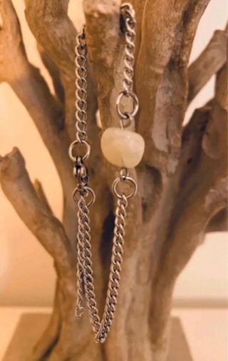 Pulsera de acero ajustable con cadena de eslabones en color plateado. Pulsera con cuenta de piedra lunar 🌜 🌒 🌛. Solo se realizan envíos 📦.