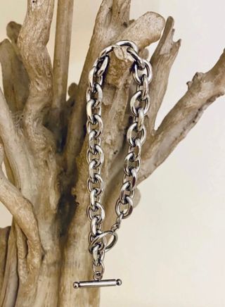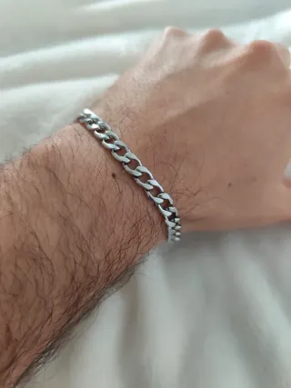 Pulsera de acero con eslabones en color plateado. Pulsera con cierre de hebilla 💫. Solo se realizan envíos 📦.