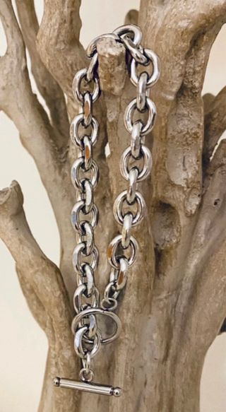 Pulsera de acero en color plateado con eslabones redondos ✨. Solo se realizan envíos 📦.