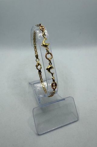 Pulsera Delfin oro combinado 18k, 5.48 g, 18.5 cm.