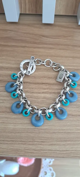 Pulsera de la marca Ciclon con un diseño original. - Cierre de tipo T. - Adornos circulares en tonos azul y turquesa. - Detalle de placa grabada.