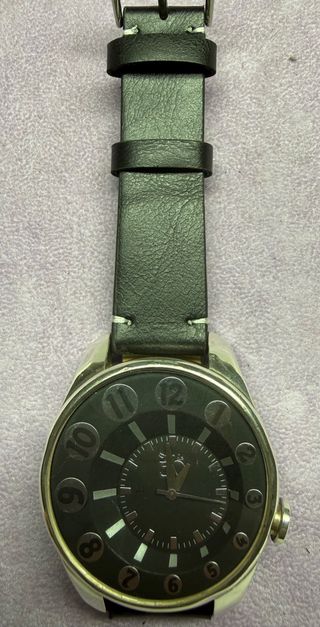 Reloj de pulsera con un diseño moderno y elegante. Modelo muy exclusivo y llamativo - Correa de cuero negra. - Esfera redonda con números grandes. - Detalles plateados en la caja y la esfera. - funciona perfectamente esta recién revisado y la pila nueva