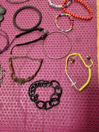 Lote de 14 pulseras con diseños y materiales diversos. - Pulseras de cuentas. - Pulseras de hilo. - Pulseras con abalorios. - Pulseras de cadena.
