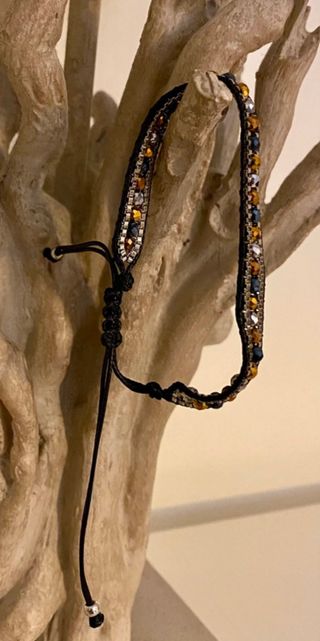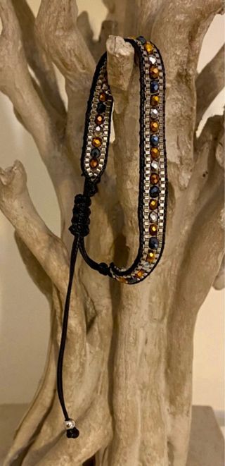Pulsera de cuerda ajustable estilo boho chic en color negro. Pulsera con cuentas en diferentes colores 🌈. Solo se realizan envíos 📦.