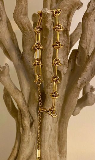 Pulsera de acero ajustable en color dorado. Pulsera con diseño en forma de nudos 🪢. Solo se realizan envíos 📦.
