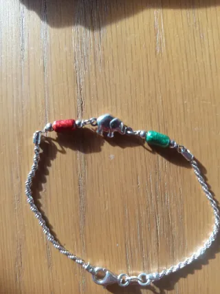 Elegante pulsera de plata con un diseño de elefante y cuentas de colores. - Diseño de elefante. - Cuentas de colores. - Cierre de mosquetón.