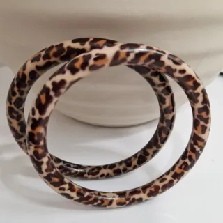 Set de dos pulseras con estampado de leopardo. - Diseño llamativo. - Acabado brillante