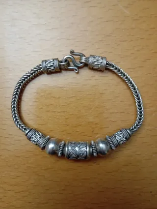 Pulsera de plata con abalorios.