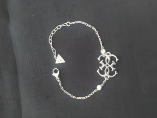 Elegante pulsera de la marca Guess. En su bolsa original - Diseño con doble G entrelazada. - Pequeños detalles de pedrería. - Cierre de mosquetón.