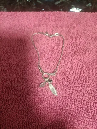 Elegante pulsera de plata con un diseño delicado. Piedra circonita y obsidiana - Colgante de pluma. - Colgante de hoja con piedra. - Detalle de piedra redonda.