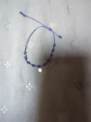 Pulsera con cordón azul y charm de trébol en plata. Es un accesorio delicado y ajustable. - Charm con forma de trébol. - Cordón ajustable. - Detalle metálico plateado.