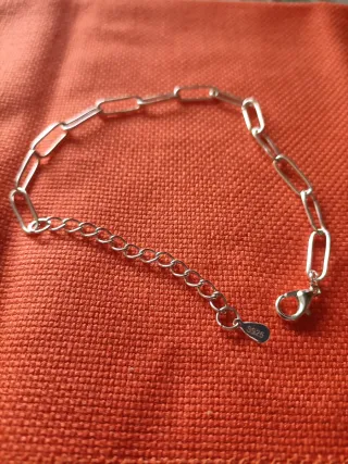 Elegante pulsera de acero inoxidable con un diseño de cadena de eslabones. Hay cordón también. No es PLATA. Muchas den 21cm - Material: Acero inoxidable. - Cierre de mosquetón. - Cadena de extensión para ajustar la medida.