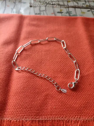 Elegante pulsera de plata con un diseño de eslabones entrelazados. Cuenta con una cadena extensora para un ajuste personalizado y un cierre de gancho seguro. Es plata no se pone negra - Diseño de eslabones. - Cadena extensora. - Cierre de gancho.