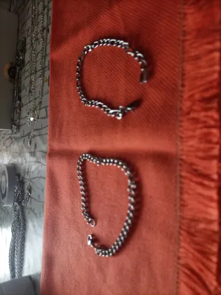 Pulseras varias de acero inoxidable. No plata. No se ponen negras. Miden 21cm