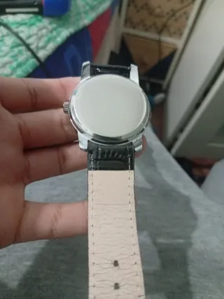 Elegante reloj de pulsera con un diseño clásico y sofisticado. - Esfera blanca con números romanos. - Correa de piel negra con acabado brillante. - Detalles plateados en la caja. Precio negociable