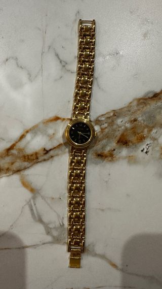 Reloj de pulsera dorado con esfera negra