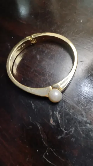 Elegante pulsera rígida con un diseño moderno y un toque clásico. Perfecta para añadir un detalle sofisticado a tu look. - Acabado en tono dorado. - Detalle de perla central.