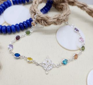Pulsera Plata S925 Nudo Bruja Cristales Corazón
