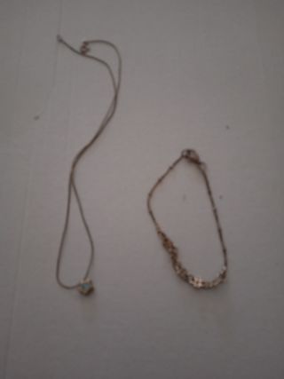 Preciosa pulsera y collar con detalles en plata y piedras azules. Ambos están en buen estado. - La pulsera tiene un diseño elegante y delicado. - El collar presenta un dije rectangular con textura. - Se incluyen dos piezas: una pulsera y un collar.