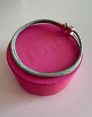 Pulsera de la marca Tous con perlas, cuentas turquesa y cristales azules de formas irregulares. Incluye un charm de oso plateado. Sin cierre, es una banda elástica pero firme facilitando su puesta. Si necesitas alguna foto más o tienes cualquier otra consulta, estoy a tu disposición :)