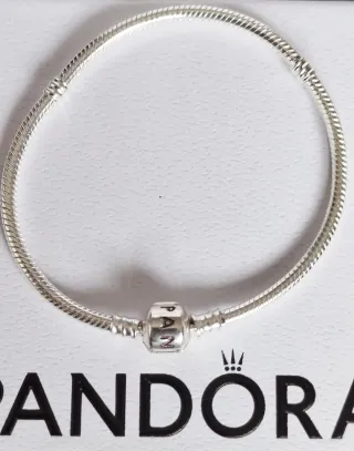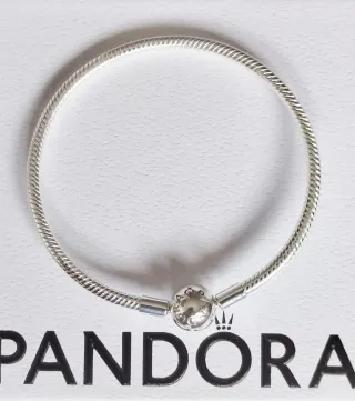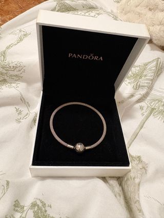 Venta solo por envío No tengo tiempo de quedar Elegante pulsera Pandora con cadena de serpiente y un encantador cierre en forma de rosa. Talla 17cm Como nueva puesta una vez Se vende con caja y bolsa original No tengo factura ni Ticket es un regalo y me queda pequeña - Diseño de cadena de serpiente. - Cierre con detalle de rosa. - Acabado en tono dorado.