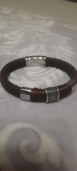 Pulsera de cuerda ajustable, color marrón. En muy buen estado, sin roturas ni desgaste. Cierre corredero para adaptar la medida a la muñeca. Los charms van fijos en la cuerda: 👉 no se pueden sacar, solo deslizar a lo largo de la cuerda para cambiar su posición. Estilo casual, unisex, ligera y cómoda. 📦 Entrega en mano o envío disponible. 💰 Precio negociable.