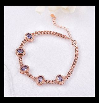 Pulsera artesanal con 5 tanzanitas naturales certificadas realzadas en sobre un bonito diseño en plata acabada en oro. • Artículo: Pulsera • Estado: Nuevo, excelente • Longitud total: 200 mm (ajustable) • 5 x tanzanita ovalada (6,71 x 4,21 x 2,36 mm) - 0,46 ct cada una - total 2,30 ct Se adjunta certificado en el envio
