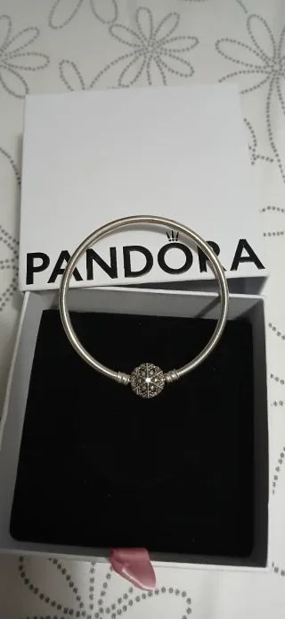 Pulsera rígida de la marca Pandora, con un diseño elegante y un charm central. - Elaborada en plata. - Charm central con detalles intrincados.