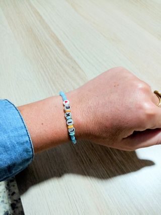 Bonita pulsera hecha a mano con cuentas. - Diseño con la palabra LIKE. - Cuentas de colores variados.