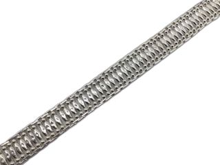 Elegante pulsera esclava de plata 925 con un diseño geométrico en acabado oxidado y cierre de seguridad. La pátina imprime un aspecto moderno y único al metal. Es unisex e ideal tanto para un look gótico como para un estilo clásico e intemporal. No es de ninguna marca en particular. Peso 13 g. aprox. Medidas: 19,5 x 0,6 x 0,2 cm.
