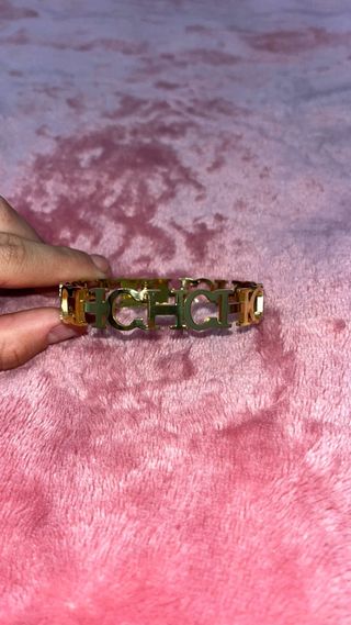 Elegante pulsera con las iniciales CH entrelazadas. - Diseño abierto. - Acabado metálico brillante.