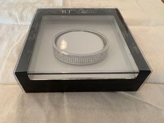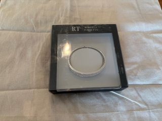Elegante pulsera de Roberto Torretta con un diseño brillante. - Acabado plateado. - Detalles con brillantes. La parte negra de la caja de haber estada almacenada, esta un poquito deteriorada.