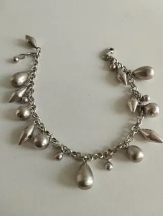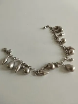 Graciosa pulsera con varios charms colgantes. - Diseño de cadena con eslabones. - Adornos en forma de gotas, bolitas y conos. - Cierre de mosquetón. - Acabado metálico brillante.