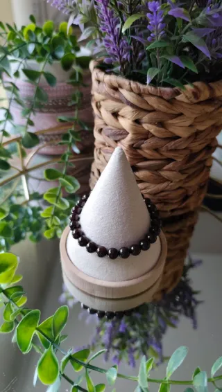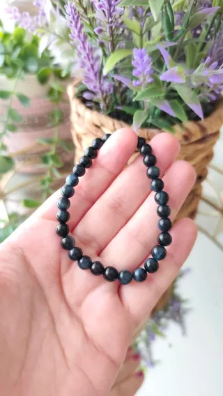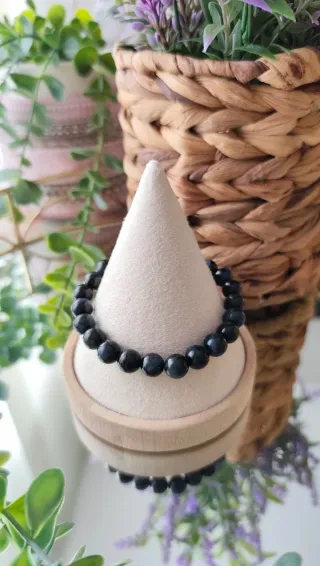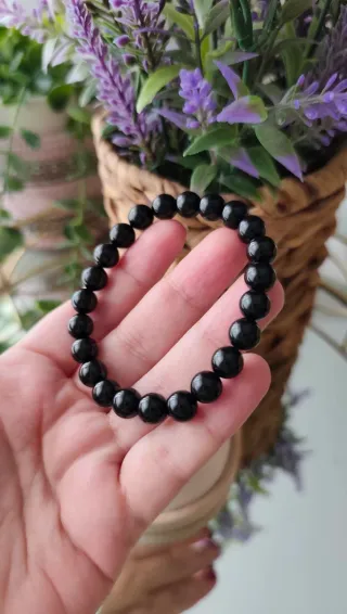 Elegante pulsera elaborada con cuentas de turmalina negra de 8mm. - Tamaño de las cuentas: 8mm. - Diseño minimalista y versátil.