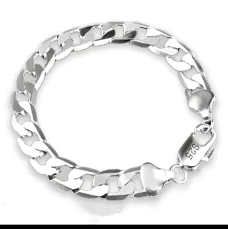 Elegante pulsera de plata 925 con eslabones tipo barbada. - Material: Plata de ley 925. - Diseño: Cadena barbada. - Cierre: Mosquetón.