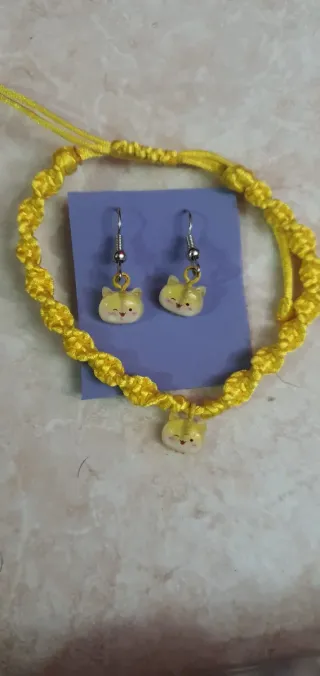 Conjunto de pulsera y pendientes con diseño de Pikachu. - Pulsera con cordón amarillo y cierre ajustable. - Pendientes a juego con figura de Pikachu. Tambien se vende por separado