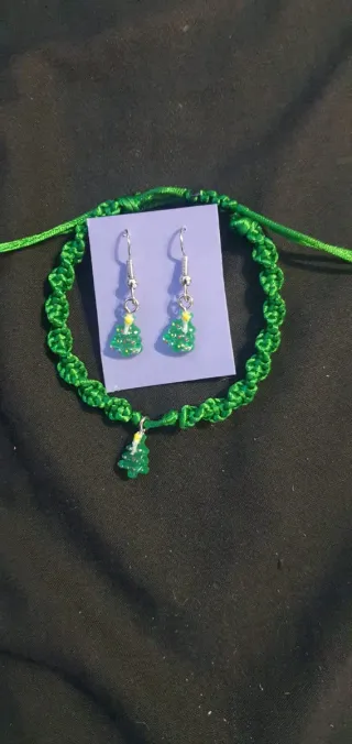 Adorable conjunto de joyería inspirado en Keroppi. - Pulsera con cordón tejido. - Pendientes a juego con el personaje. - Cierre de gancho en los pendientes.