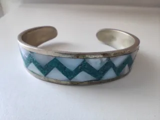 Elegante pulsera para mujer con un diseño etnico y piedras de tonalidad azul y blanco. Diseño llamativo y moderno. Ver las medidas, es de metal rígido.