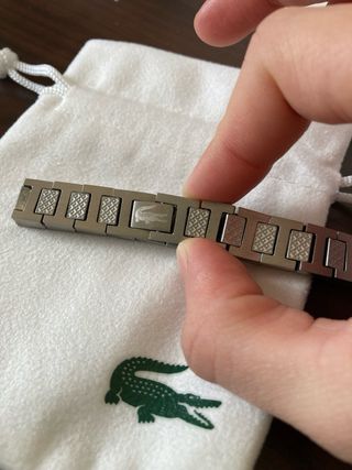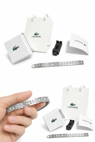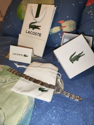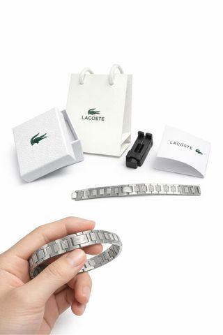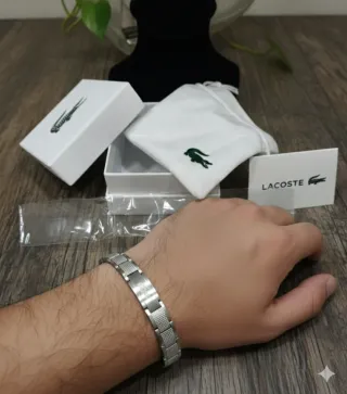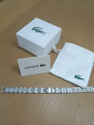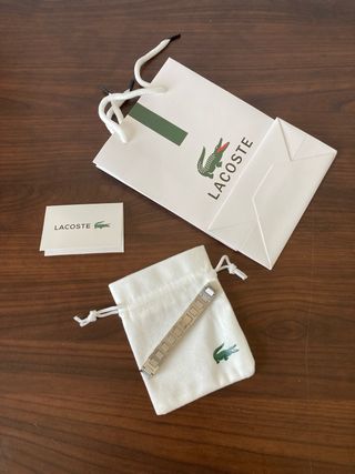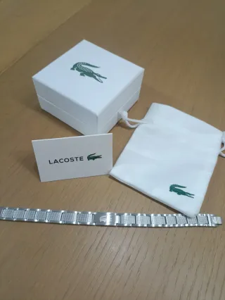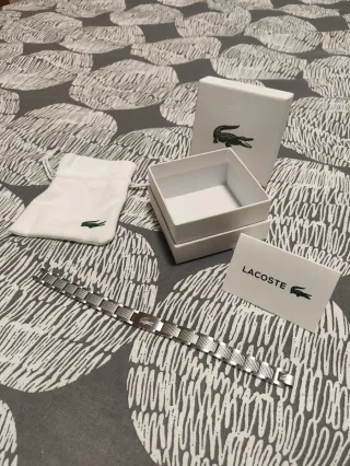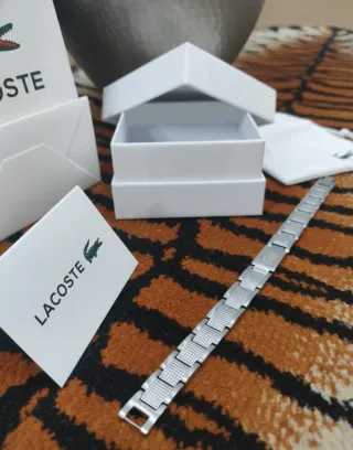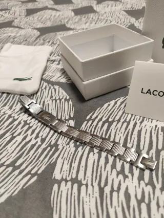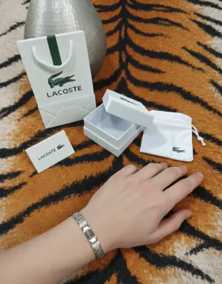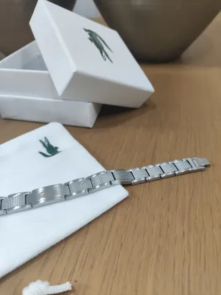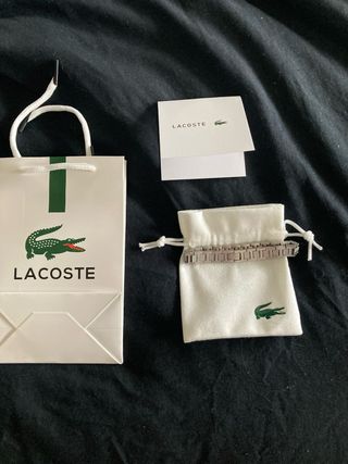 Elegante pulsera de la marca Lacoste acero inoxidable plateada con bolsita de tela, tarjeta y bolsa de compra. Nueva sin uso Envio 12/24h📦