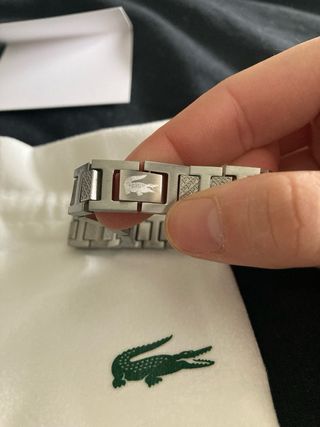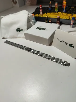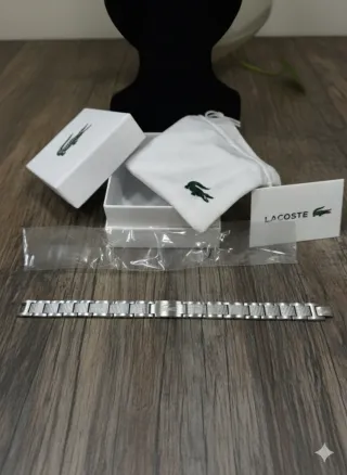 Pulsera Lacoste auténtica, fabricada en acero inoxidable de alta calidad, con un diseño elegante y moderno que combina perfectamente con cualquier estilo, tanto casual como formal. 🔹 Estado: Excelente / como nueva 🔹 Marca: Lacoste (100% original) 🔹 Material: Acero inoxidable 🔹 Color: Plateado 🔹 Cierre: Seguro y cómodo, con logo Lacoste grabado 🔹 Incluye: ✔️ Caja original Lacoste ✔️ Bolsa Lacoste ✔️ Tarjeta/librito original ✔️ Herramienta para ajustar eslabones Pulsera muy cómoda de llevar, resistente al uso diario y con un acabado premium. Ideal para uso personal o como regalo elegante 🎁 📦 Envío rápido y bien protegido.