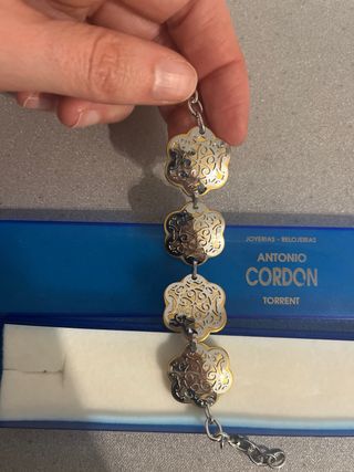 Elegante pulsera de la marca Antonio Cordon. - Diseño con motivos florales. - Combinación de tonos dorados y plateados.