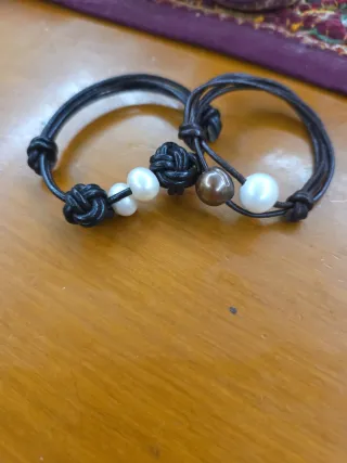 Pulseras de cuero con perlas