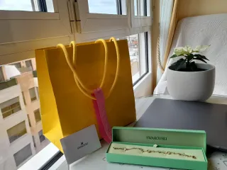 Elegante pulsera de la marca Swarovski, a estrenar. Nunca se ha utilizado. En su caja y bolsa de origen. Impecable. - Diseño delicado con cristales. - Acabado en tono dorado
