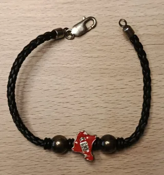 Pulsera de cuero trenzado con un detalle dl mapa de Navarra - Cierre de mosquetón. - Nuevo. - Tal cual se ve en las fotos.