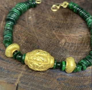 Pulsera de jadeíta birmana natural con oro 18K y certificado Preciosa pulsera de jadeíta natural de Birmania con separadores y cierre en oro de 18K. • Largo aprox.: 18,5 cm • Peso total: 18,75 g • Con certificado